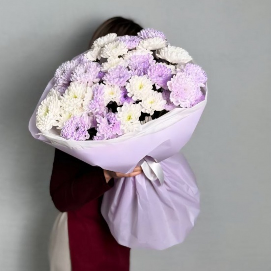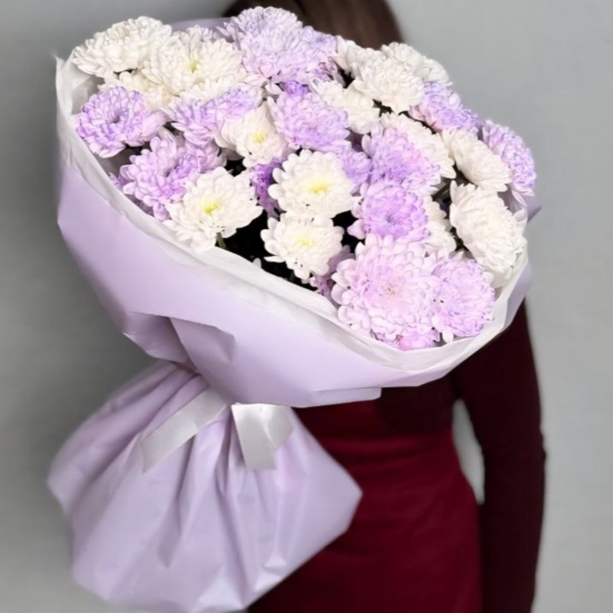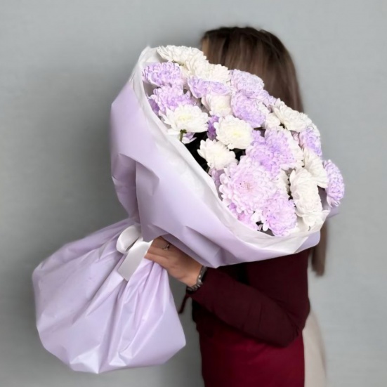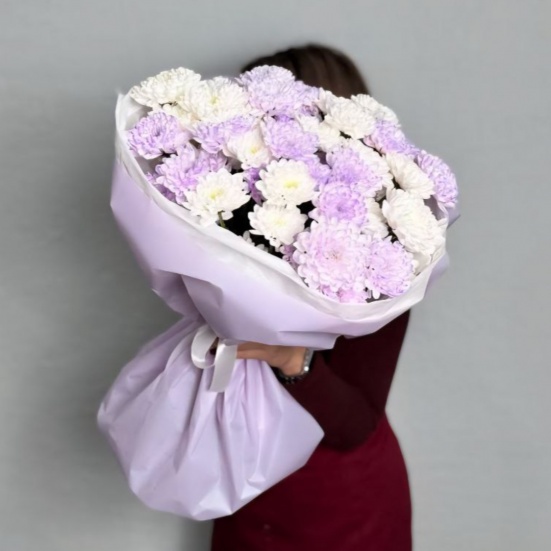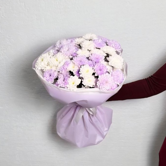 Букет из 9 фиолетовых и белых хризантем в Щёлково